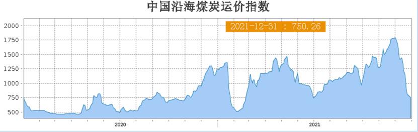 本周,沿海煤炭運(yùn)價仍然維持跌勢,不過跌幅明顯收窄。截至12月30日沿海煤炭運(yùn)價指數(shù)為758.65,較上周同期下跌117.66點(diǎn),跌幅13.43%;較上月同期下跌1027.35點(diǎn),跌幅57.52%;較去年同期下跌447.65點(diǎn),跌幅37.11%。